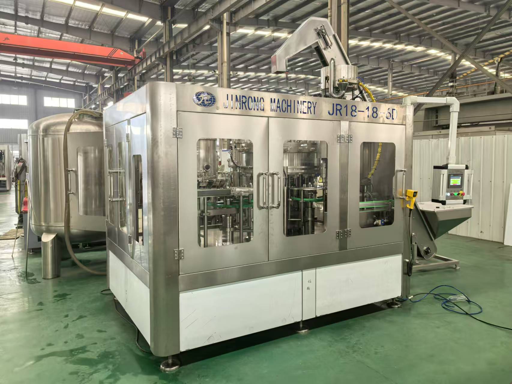 金榮飲料機(jī)械廠家制造供應(yīng)的全套飲料生產(chǎn)線、果汁生產(chǎn)線、碳酸飲料生產(chǎn)線、小瓶礦泉水灌裝設(shè)備、大瓶水生產(chǎn)線、桶裝水生產(chǎn)線、純凈水灌裝機(jī)設(shè)備、瓶裝礦泉水灌裝生產(chǎn)線、易拉罐啤酒灌裝機(jī)等系列產(chǎn)品主要運用在純凈水,礦泉水,果汁,茶,熱灌裝飲料,功能飲料,含汽飲料,碳酸飲料,啤酒等液體飲料灌裝生產(chǎn)。其供應(yīng)的灌裝生產(chǎn)線可配套全自動吹瓶機(jī)、水處理設(shè)備、前處理設(shè)備、飲料殺菌設(shè)備、貼標(biāo)機(jī)、包裝機(jī)等相關(guān)配套機(jī)械設(shè)備。金榮多年來的設(shè)備研發(fā)和制造經(jīng)驗,讓金榮機(jī)械為飲料生產(chǎn)企業(yè)和水廠等提供了穩(wěn)定的全套灌裝生產(chǎn)線設(shè)備。